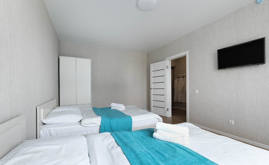 Квартира вмещает 6 гостей. Две двуспальные кровати и удобный диван-кровать.