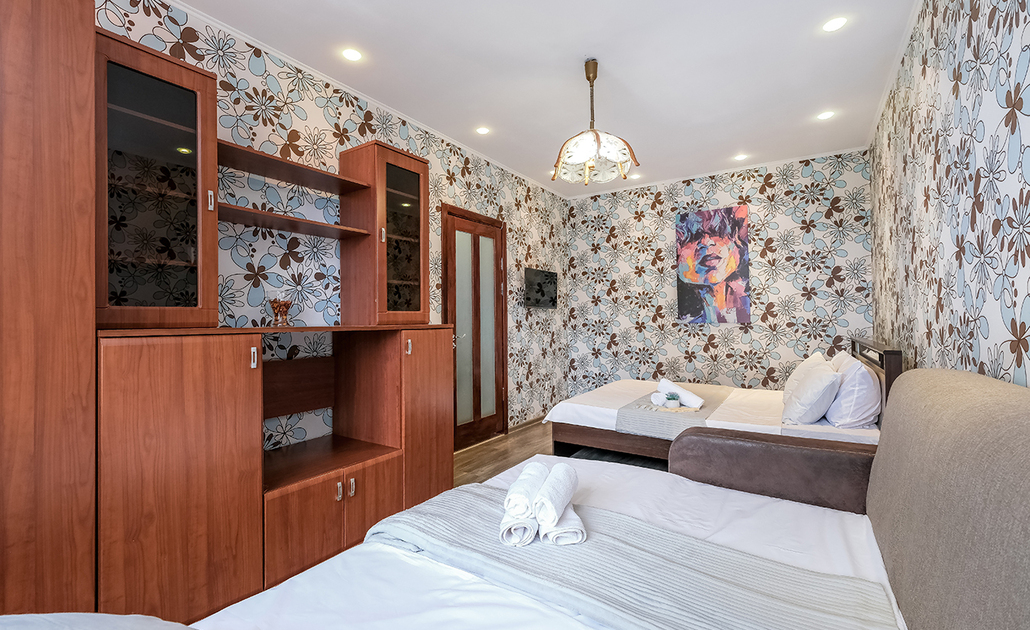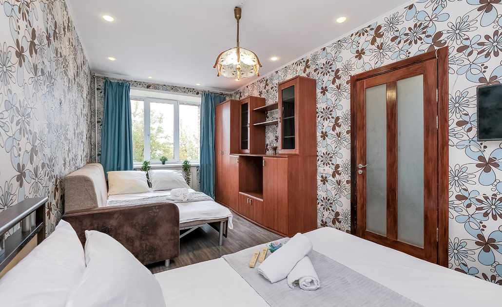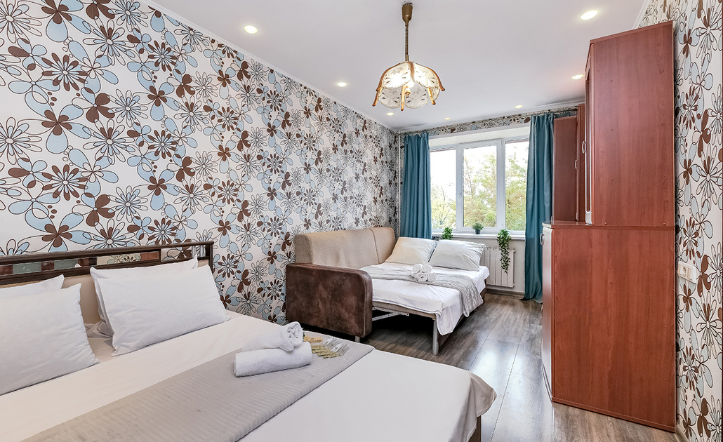 Квартира вмещает 4 гостя. Спальные места: одна двуспальная кровать и диван-кровать двухместный. Принимаем оплату любым удобным для вас способом, в том числе банковской картой.