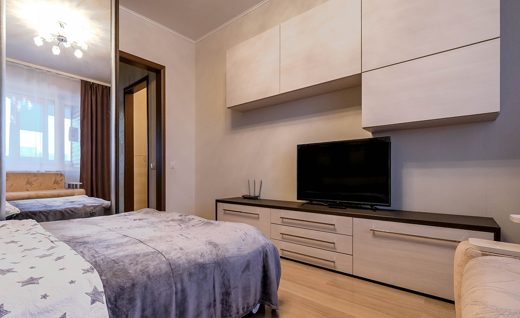 Спальные места: комфортная двуспальная кровать и диван-кровать.